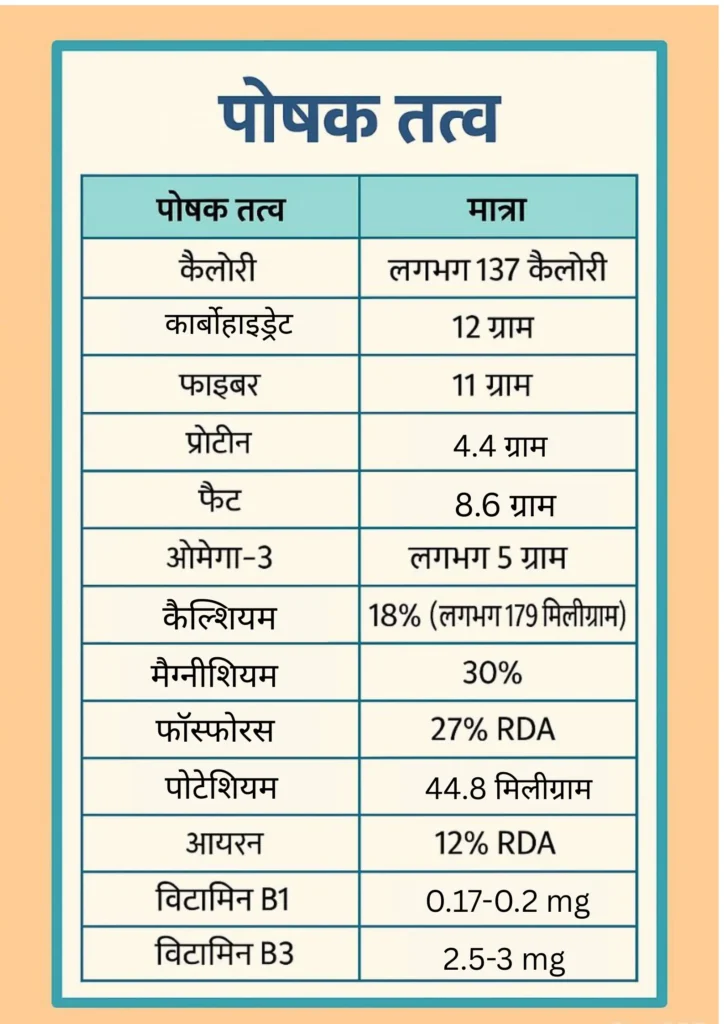लगभग 28 ग्राम यानी करीब 2 टेबलस्पून Chia Seeds में पोषक तत्वों का भरपूर खजाना छिपा होता है। इसमें संतुलित मात्रा में कैलोरी, प्रोटीन, फाइबर, हेल्दी वसा और कार्बोहाइड्रेट पाए जाते हैं, जो शरीर को ऊर्जा देने के साथ-साथ मेटाबॉलिज़्म को भी सपोर्ट करते हैं। इसके अलावा चिया सीड्स में कैल्शियम, मैग्नीशियम, फॉस्फोरस और आयरन जैसे आवश्यक खनिज मौजूद होते हैं, जो हड्डियों को मज़बूत बनाने, मांसपेशियों के सही कार्य और संपूर्ण स्वास्थ्य के लिए बेहद ज़रूरी हैं। खास बात यह है कि यह ओमेगा-3 फैटी एसिड का एक बेहतरीन प्लांट-बेस्ड स्रोत है, जो हृदय स्वास्थ्य और सूजन को कम करने में मदद करता है।