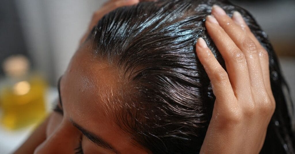 - उंगलियों से स्कैल्प में 5–10 मिनट मसाज करें